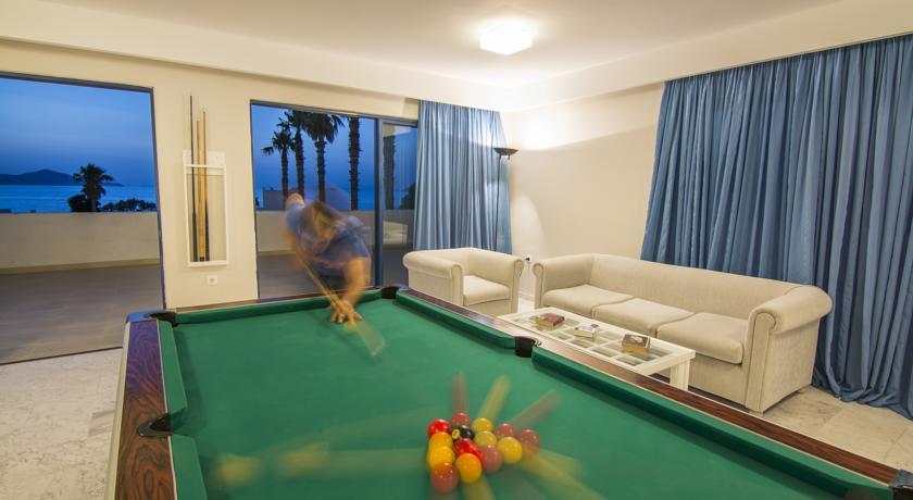Белые, словно сахарные, домики традиционной для островов Эгейского моря архитектуры рассыпались среди нарядных цветников и экзотических пальм. Изумрудные ковры ухоженных лужаек плавно переходят в бархат песков собственного, трехсотметрового пляжа отеля с удобно расположенными тут и там шезлонгами под тенистыми зонтиками. От навязчивого внимания Эола нетрудно отгородиться ветрозащитными экранами, а игривость волн на песчано-галечном мелководном побережье Эгейского моря легко сменить на спокойствие вод просторного бассейна. В течение дня гостей Aeolos Beach развлекает команда инициативных аниматоров, ближе к закату организовываются тематические вечера и дискотеки, а раз в неделю грандиозное праздничное шоу у бассейна заставляет отдыхающих встряхнуться, забыть о возрасте и прочих ненужных условностях, чтобы почувствовать себя почти настоящими греками.
