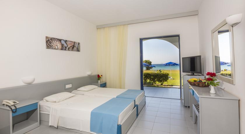 Уютные номера в главном корпусе Aeolos Beach и небольших двухэтажных бунгало, площадью от семнадцати до двадцати квадратных метров, представлены в различных вариантах: с балконом и без, с душем или ванной-джакузи. Но всех их объединяет отменное и продуманное техническое оснащение, вплоть до розетки на 220В, холодильника, фена и прочих привычных удобств. В жаркий сезон воздух в номерах охлаждается централизованно, по специально установленному расписанию: в полдень и по ночам. В каждом номере есть платный сейф и бесплатный беспроводный доступ в глобальную сеть. При этом светлые современные интерьеры оформлены в классической для Средиземноморья бело-синей цветовой гамме, гармонично перекликающейся с прекрасными видами на побережье или бассейн из окон номеров.