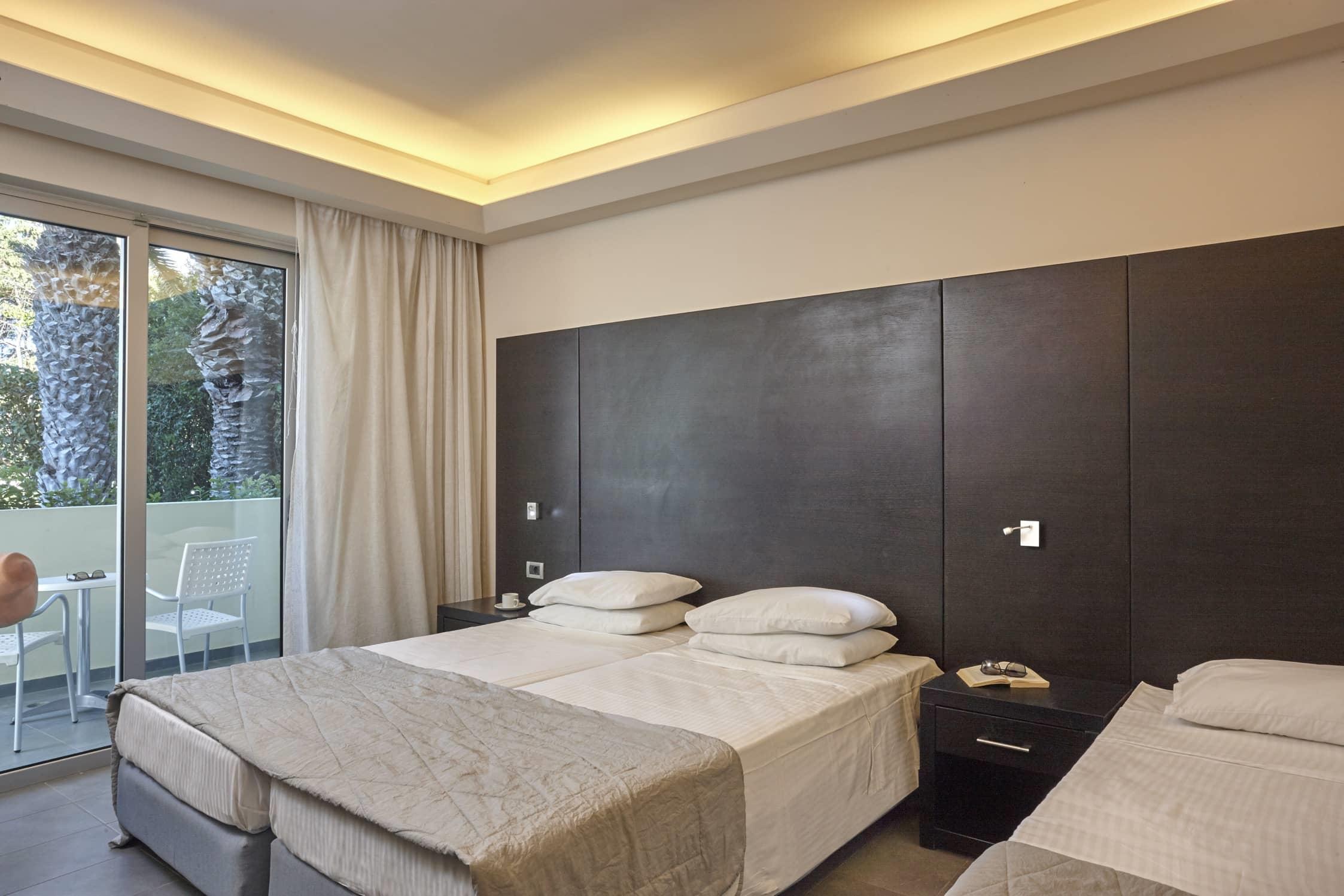 Для бронирования доступны 104 просторных номера, которые оснащены интернетом, сплит-системой, мини-баром, сейфом, телевизором, террасой, феном и собственной ванной комнатой.