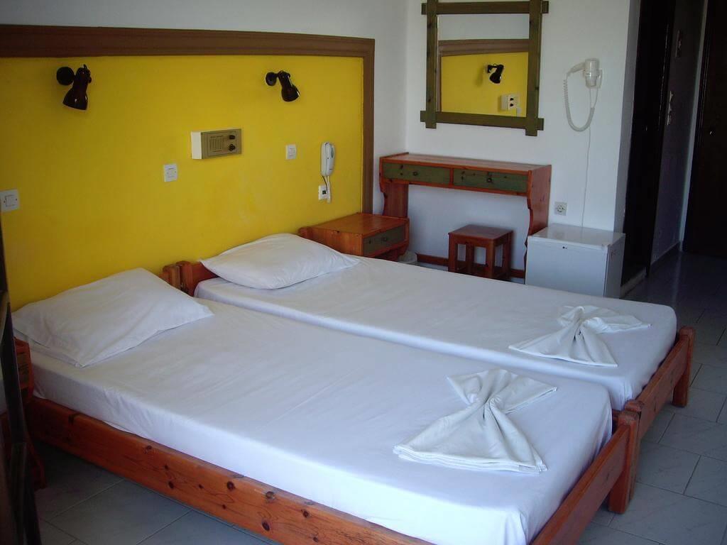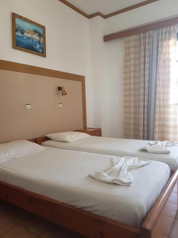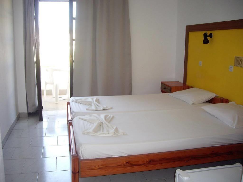 Номера Hotel Hermes скромно обставлены деревянной мебелью – на выбор гостей предоставляют двухместные номера с отдельной и совместной кроватями. Во всех есть отдельная ванная комната, телевизор со спутниковыми каналами и балкон или терраса. Кроме спальной зоны, предусмотрен письменный стол.