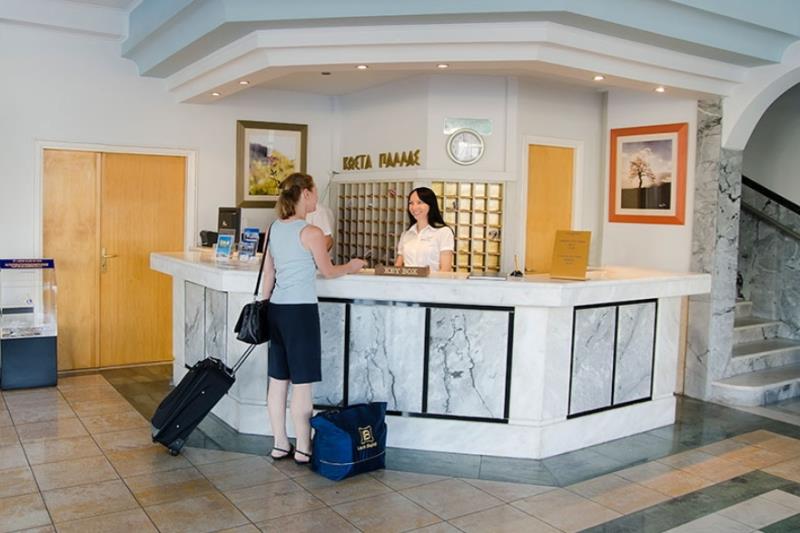 Разноцветными балкончиками из-за стройных красавиц-пальм поглядывает на вновь прибывших гостей Коса трехэтажное здание Kosta Palace, обосновавшееся на самом берегу главной туристической гавани острова. А когда дневная суета большого порта сменяется ярким сиянием яхтенных гирлянд, отражающихся в спокойных водах тихой бухты, этот небольшой отель на сто шестьдесят пять номеров занимает свое почетное место в ожерелье нарядных огней вечерней набережной. Буквально за углом с наступлением ночи оживают притягательными ритмами современных хитов модный The X Club и другие развлекательные площадки. В двухстах метрах интригует искусной подсветкой таинственный силуэт средневековой крепости, со времен рыцарей-иоаннитов охраняющей вход в гавань. Да и все основные городские достопримечательности: древняя агора, платан Гиппократа, старинная мечеть – тоже притаились в ночных тенях неподалеку, ожидая восхода солнца, чтобы предстать перед гостями Коса во всем великолепии. Кроме того, всего около ста метров отделяют Kosta Palace как от галерей магазинов и рыночных рядов, так и от ближайшего песчано-галечного городского пляжа Papas. Этот пляж пользуется особой популярностью у молодежи, благодаря огромному выбору морских развлечений, шумных баров и гостеприимных таверн. В считанных минутах ходьбы от отеля находятся и ближайшая автобусная остановка и стоянка такси, откуда стартуют увлекательные экскурсии по острову.
