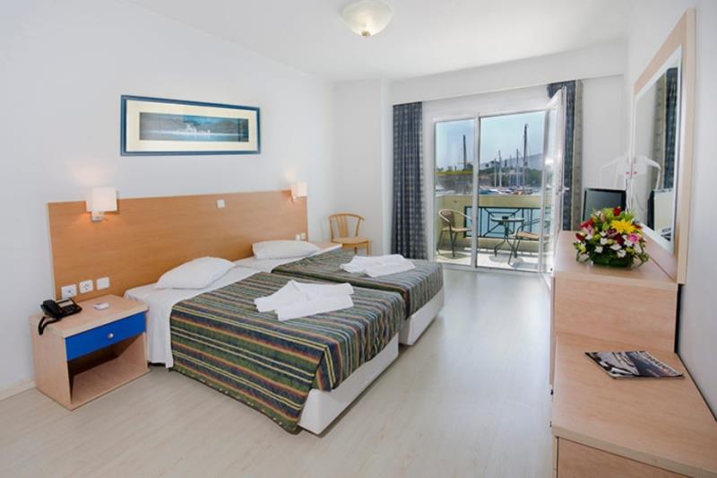 Kosta Palace предлагает своим гостям с удобством расположиться в стандартных двухместных номерах, в более просторных двухкомнатных апартаментах семейного типа, оснащенных полнофункциональной кухней и столовой зоной, или в элегантных люксах с большой ванной-джакузи – для романтичного медового месяца. Яркие элементы мебельного декора, веселая клетка темных гардин и умеренная пестрота полосатого текстиля оживляют простые интерьеры, оформленные в классическом островном стиле. И все же главное украшение номеров – пленительные и динамичные картины морского порта, красующиеся за панорамными окнами, которые выходят на приватные меблированные балконы. При этом в каждом номере в обязательном порядке есть холодильник, телевизор, телефон и фен и бесплатный, как и на всей территории Kosta Palace, доступ к Wi-Fi
