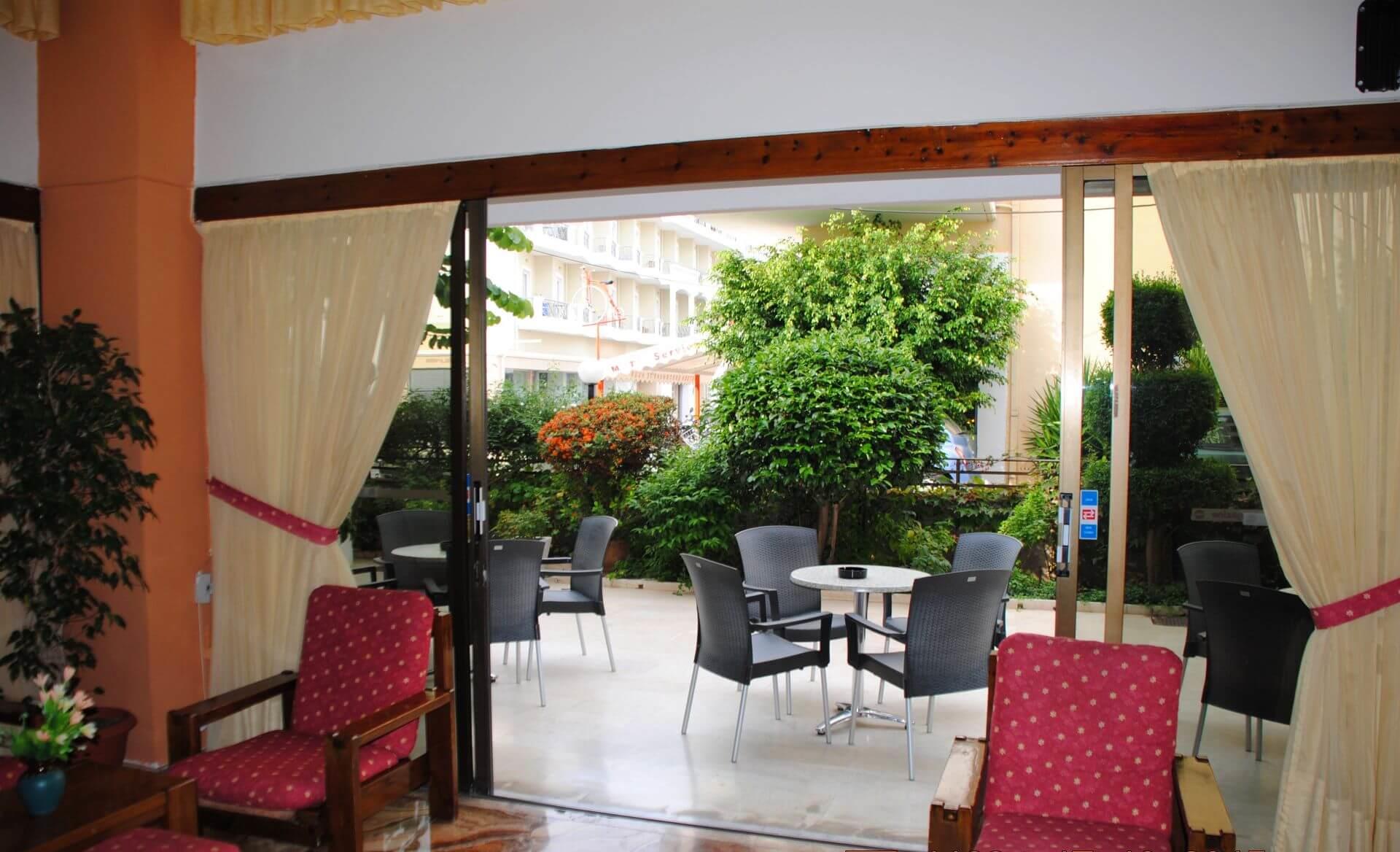 Ежедневно в ресторане отеля вас ждет ароматный завтрак с греческими блюдами, а кафе с террасой предлагает насладиться вкусным кофе и десертами в приятной атмосфере.