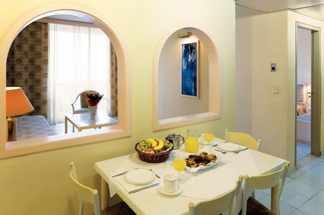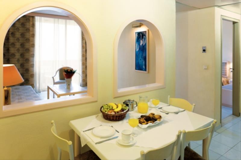 Несмотря на то, что гости Epsilon Apartments располагают полной свободой выбора в отношении режима и организации питания, приотельная a la carte таверна Mystras открыта в течение всего дня: здесь предлагается отведать не только национальные яства, но и всем привычные блюда международной кухни. Начиная со второй половины дня в уютном лобби-баре с мягкой мебелью доступны напитки различной степени крепости, которыми можно наслаждаться как в прохладном зале, так и на открытой террасе. А чтобы утолить жажду на пляже, нет никакой необходимости бежать в отель: на берегу тоже открыт очень уютный б