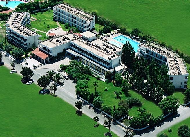 На восточном побережье острова Родос, как раз на полпути между его легендарной столицей и древним акрополем Линдоса, в тихой бухте Колимбии, среди изумрудной зелени собственного парка обосновались три трехэтажных корпуса и главное здание Delfinia Resort.