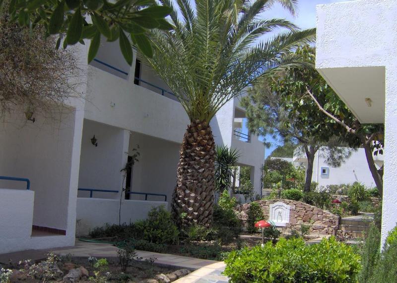 Отель состоит из пяти двухэтажных корпусов, уютно расположившихся всего в ста пятидесяти метрах от ближайшего пляжа Ладико. Чуть подальше необходимо пройти до знаменитой бухты Энтони Куинна. Именно у ее скалистых берегов, да еще поблизости от таинственных подводных гротов Трагану обосновались филиалы рая для исследователей подводных красот.