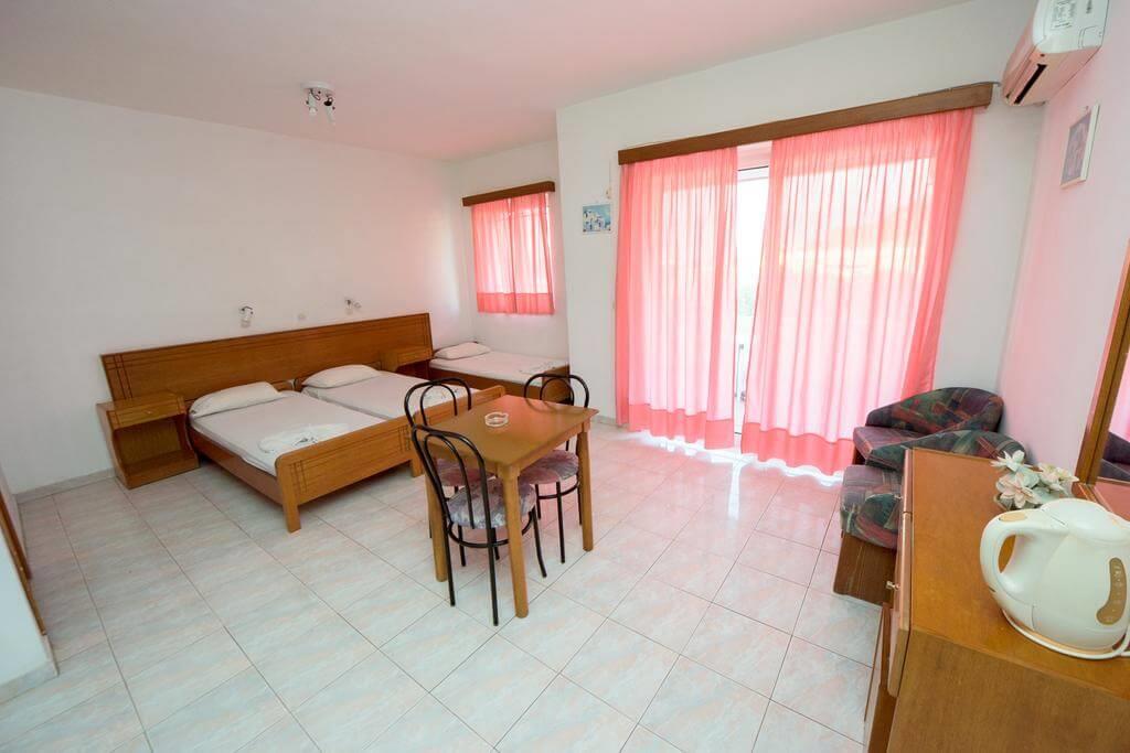 Каждое утро для гостей подаются завтраки, а в течение дня у бассейна можно насладиться свежевыжатыми соками, кофе, мороженым и легкими блюдами. Ресторан отеля специализируется на греческих и международных блюдах. Также гостей ждут вечера барбекю с местными деликатесами. Кроме этого, к услугам постояльцев круглосуточная рецепция, работники которой готовы вам помочь в любое время суток. Гостиница располагает бассейном с детской зоной, рядом с которым расположена терраса для загара и отдыха с шезлонгами и зонтами.