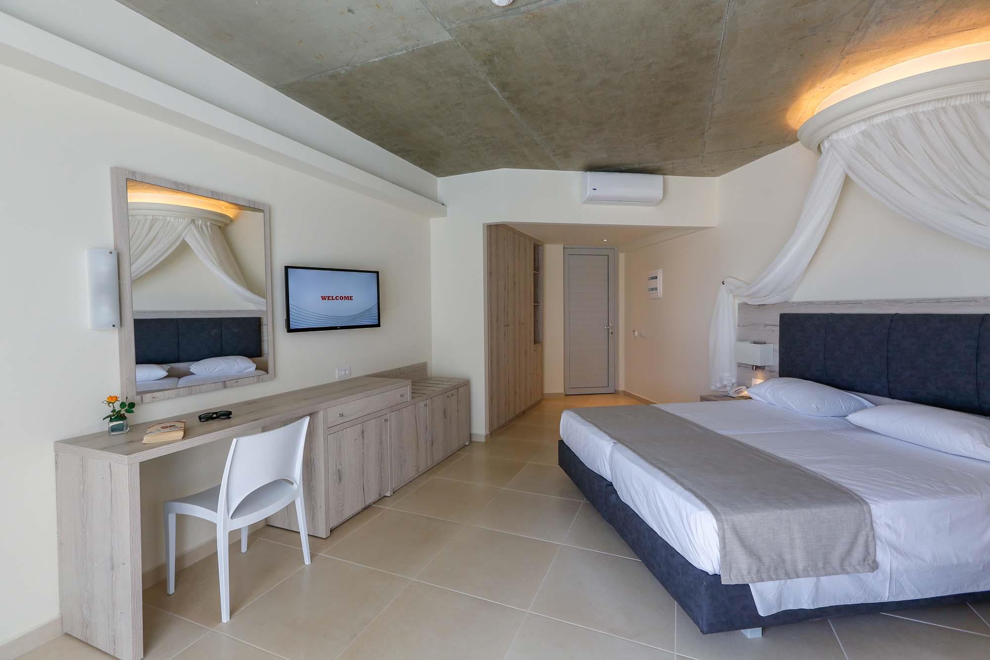 Просторные номера со стильной мебелью оснащены индивидуально управляемой сплит-системой (платно), телевизором, телефоном, террасой, феном и ванной комнатой.