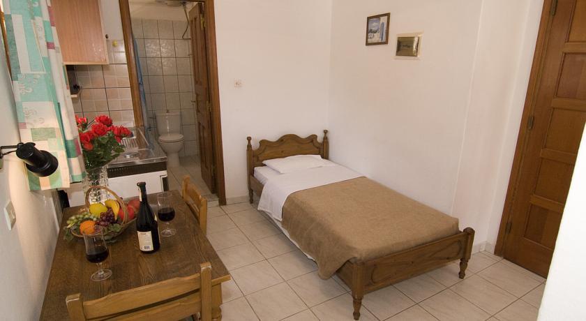 – один из типичных провинциальных южных городков с узкими мощеными белоснежным камнем улочками, по которым вместо автомобилей снуют ослиные повозки, заменяющие туристам такси. Под стать самому местечку и небольшая гостиница St. Paul’s Bay Studios, которая расположилась недалеко от морского берега, прямо напротив живописной бухты Святого Павла. Здание отеля довольно старое, представляет собой типичную средиземноморскую постройку из камня с террасами и множеством ступенек в комнаты второго этажа. Номеров в отеле всего пятнадцать, все они являются двухместными или трехместными студиями, каждая из которых оборудована собственной кухней. Хозяева после недавней реставрации сохранили местный колорит в оформлении внутреннего убранства покоев