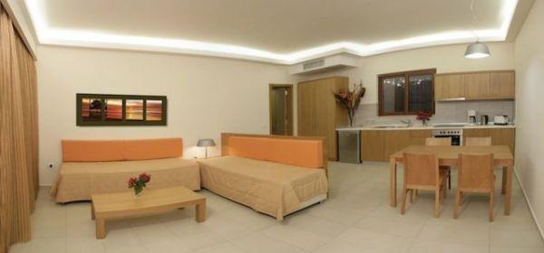 Простая классика интерьеров с грубыми деревянными потолками и элегантной мебелью соседствует здесь с великолепным техническим оснащением и всеми атрибутами комфорта: плоский телевизор в тридцать семь дюймов, бесплатный Wi-Fi доступ в Интернет, сейф, кондиционер и гидромассажные ванны есть в любом номере. Да и прекрасно оснащенные кухонные уголки придают апартаментам дополнительную функциональность.