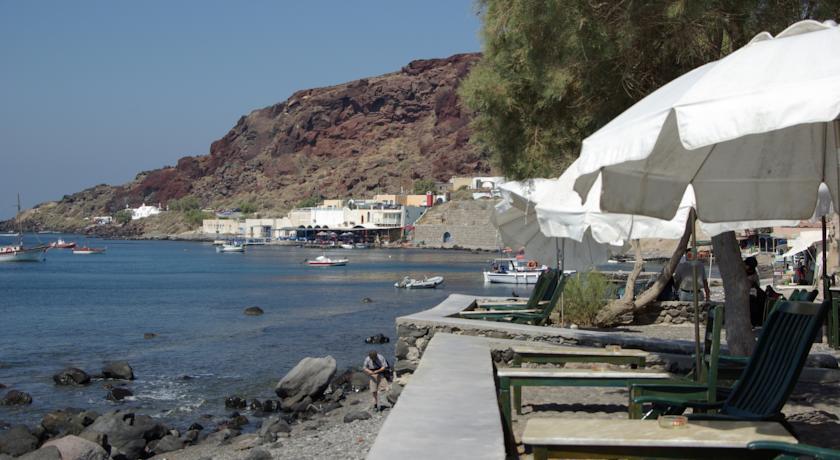 А для разнообразия или для более плотных перекусов жильцы отеля частенько наведываются в окрестные ресторанчики. Например, на пляже поселка круглосуточно работает заведение The Cave of Nikolas Taverna, где готовятся блюда греческой кухни. Однако столики лучше бронировать, ведь и среди местных жителей ресторанчик весьма популярен. На пути с красного пляжа трудно пройти мимо таверны Glaros, в которой предлагается много разных деликатесов из морепродуктов. Возле маяка для посетителей всегда открыта недорогая таверна Aeolos, с террасы которой открывается вид на вулкан. Здесь подаются блюда греческой кухни, в том числе и из даров моря. А на дороге в город Faros стоит небольшой ресторанчик Giorgar