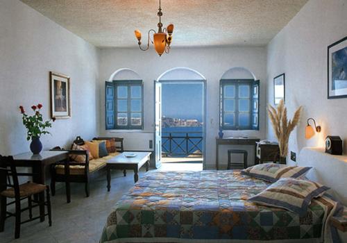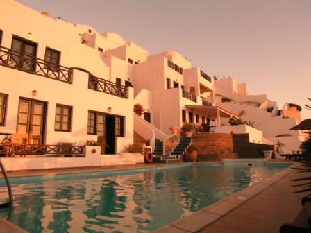 Месторасположение гостиницы позволяет поближе познакомиться с красотами острова и его достопримечательностями. В находящейся всего в двух километрах Фире – столице островов любителей ночной жизни встречают открытые двери клубов, баров и ресторанов. Но даже с меблированных террас, наблюдая за закатами и рассветами, перед постояльцами Andromeda Villas открывается картина утопающего в море и из него же восстающего светила, что напоминает в целом всю историю Сантори