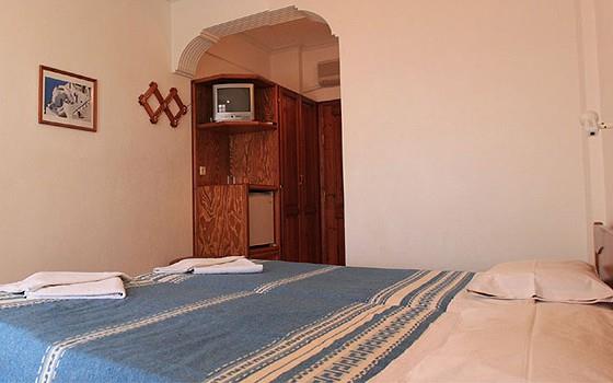 Приятные пастельные тона доминируют в интерьере апартаментов, которые оборудованы телевизором, мини-холодильником, сейфом и кондиционером. Небольшие отдельные балконы есть в каждом номере – ранним утром гости любуются отсюда выходящим прямо из моря солнцем, после чего спускаются в зал для завтрака. Богатство «шведского стола» не оставит никого равнодушным: море фруктов, свежий хлеб, мягкий греческий сыр – основа курортного завтрака на Санторини. На протяжении дня в небольшом ресторане отеля Castro Hotel готовят сытные блюда островной греческой кух