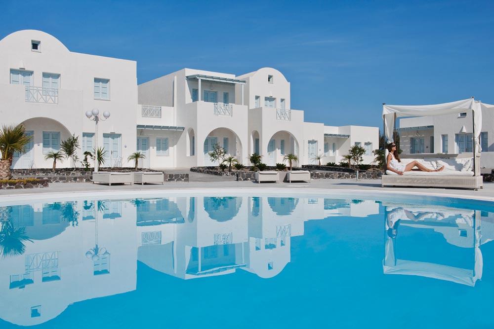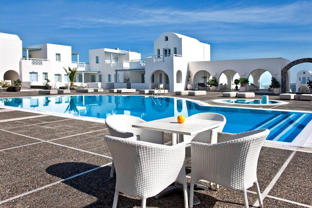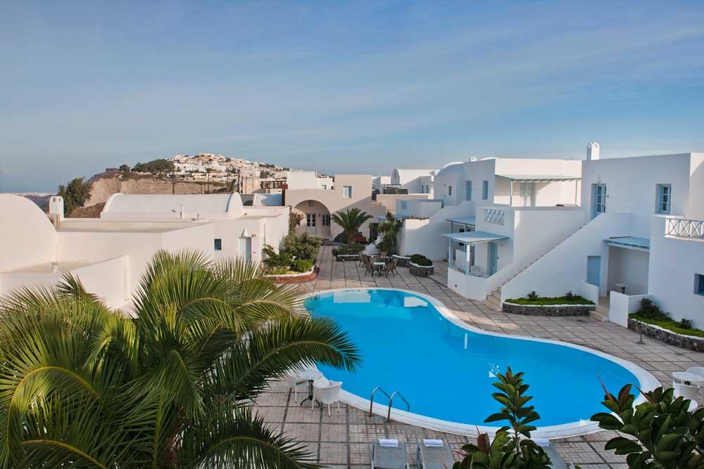 Отель El Greco расположен в нескольких минутах ходьбы от центра Фиры – островной столицы с множеством ресторанов, таверн и магазинов. Комплекс занимает довольно большую по меркам Санторини территорию. Белоснежные домики образуют стилизованную греческую деревню. Несколько бассейнов, в том числе детские, газоны, много зелени и цветов, террасы с шезлонгами – все настраивает на спокойный отдых.