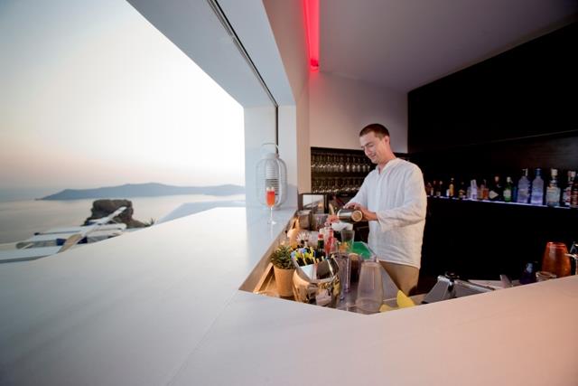 И в ресторане, и в баре интерьерный фон создают темные тона, напоминающие по цвету кровь и плоть Санторини – вулканическую породу. Оригинальная геометрия, дизайнерские акценты в интерьере и восхитительная подсветка дарят заведению совершенно уникальную атмосферу, заставляя посетителей забывать о существовании реального мира вне Grace Santorini: может быть, вот он – тот самый «край света».