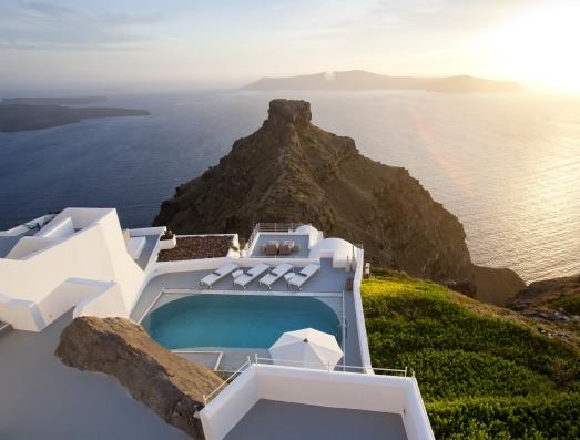 Небольшой, всего на двадцать номеров, и уютный Grace Santorini обещает незабываемый отдых в атмосфере отрешенности и спокойствия. Напротив отеля высится живописная скала, на которой сохранились остатки некогда величественной венецианской крепости, а на утесе ютится маленькая часовня. Несмотря на подобную уединенность, живописные старинные улочки Фиры и множество развлекательных заведений островной столицы от отеля отделяют всего лишь два километра. Аэропорт Монолитоса и порт Афиниос находятся отсюда в восьми и десяти километрах соответственно, поэтому дорога к отелю для вновь прибывающих занимает совсем немного времени. На месте же гостей встречают шампанским и окружают уютом просторных комфортабельных номеров. В каждом из них – поистине королевских размеров кровать с бельем высочайшего качества и одеялом из лебяжьего пуха, джакузи, бесплатный высокоскоростной Wi-Fi и широкие террасы с лежаками и столиками, откуда открывается захватывающий панорамный вид на Кальдеру. В некоторых из номеров есть личные спа-зоны для расслабляющих и оздоровительных процедур, хамам, отдельные бассейны с видом на море и уютные гостиные. В других же – кухни открытого типа, где предусмотрен бар, наполненный уникальными местными винами, которые считаются лучшими в Греции, и широкий выбор сигар.