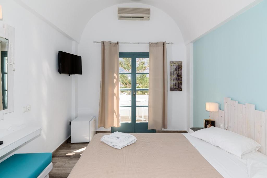 Оборудованный общественный пляж Камари, усыпанный черным песком, расположен в 100 метрах от отеля.