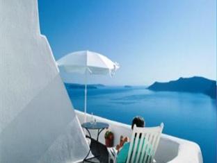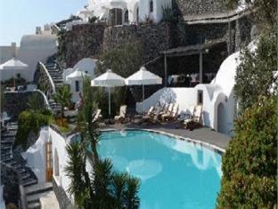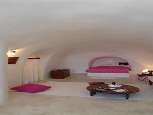 Perivolas – отель, встроенный в подножие огромной скалы, которая возвышается над Эгейским морем на греческом острове Санторини, в старинном посёлке под названием Ойя.