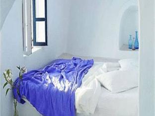Все интерьеры оформлены в так называемом Кикладском стиле: минимализм обстановки, белизна стен, пола, потолка и яркие разноцветные подушки, покрывала, коврики. Никаких штор, окна и двери балконов с деревянными рамами распахнуты на гладь Эгейского моря, откуда вливается в комнату чуть ли не божественный свет – удивительное ощущение гармонии с миром! Мебель – широкие ложа в альковах, прямо на полу, без ножек, низенькие столики, в нишах стен – тонкие длинные вазы с живыми веточками.