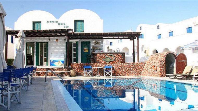 В самой спокойной части острова Санторини, всего в трех километрах от международного аэропорта находится маленький уголок безмятежности – комплекс Scorpios Beach Hotel Apartments & Studios, построенный в 1998 году и состоящий из студий и апартаментов. Остров Фира, романтичный, окутанный дымкой загадочности, является самым большим из архипелага Санторини. Рожденный из вулканической лавы, он напоминает о величии и могуществе природы. По древней легенде остров Санторини является частью затонувшей Атлантиды. В середине двадцатого столетия археологами были обнаружены десятки сохранившихся домов и руины города эпохи Минойской цивилизации, погребенные под вулканической лавой.