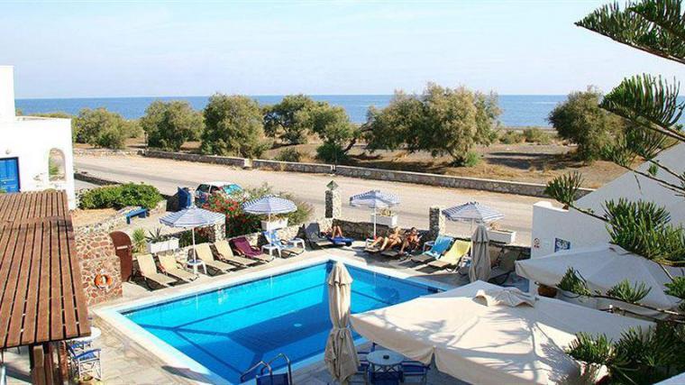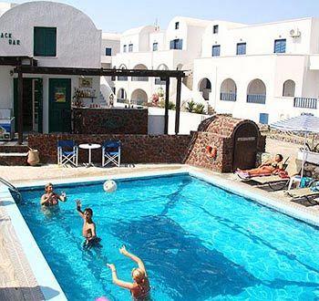 На территории имеется неглубокий бассейн с лежаками и тентами – около ста тридцати сантиметров, который прекрасно подходит для детей. Не отходя от него, можно сделать легкий перекус в недорогом снэк-баре. Санторини славится своими тавернами с национальной кухней и превосходным вином. Разнообразные точки питания позволяют быстро решить проблему голода. Две ближайшие таверны находятся буквально в нескольких шагах от комплекса, еще одна требует небольшой пешей прогулки, однако отличается прекрасно приготовленными греческими блюдами. А на территории открыт утренний буфет с европейскими завтраками – постояльцам предлагается начать день с греческого сыра, ветчины, яичницы и нескольких сортов свежего хлеба. Работает бар у бассейна с алкогольными коктейлями и холодным пивом, снэк-бар и ресторан.