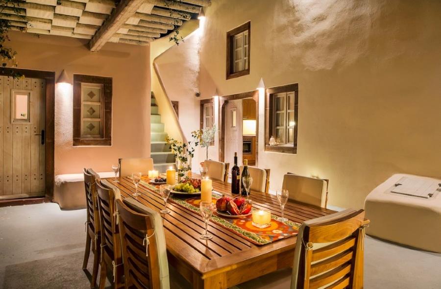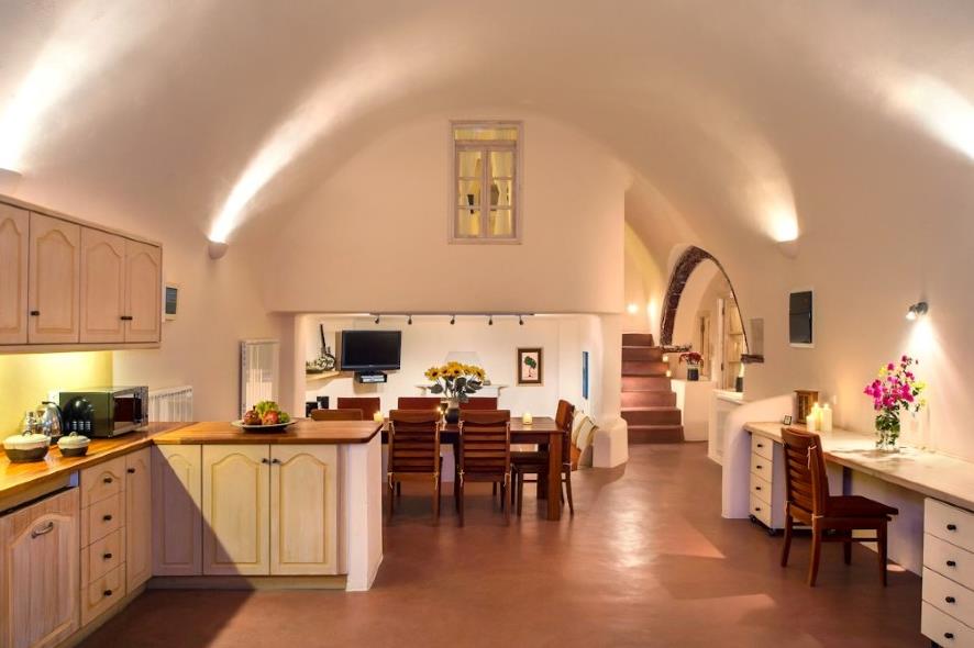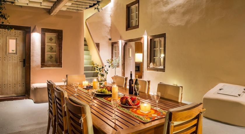 Villa Kisiris, что принимает гостей в Имеровигли, на Санторини, представляет собой старую винодельню, которая в 2007 году претерпела реконструкцию и превратилась в уютную гостиницу, состоящую из трех двухместных номеров с двумя дополнительнми спальнями. Традиционные очертания старинного здания были сохранены и дополнены современными архитектурными элементами. Господствующей темой дизайна помещений стали оригинальные сводчатые потолки. В особняке обустроен тихий внутренний дворик, здесь же находится бассейн, поблизости сервируют обеденный стол, под навесом в вечернее время манит живым теплом камин. В каждом номере предусмотрены отопление и кондиционирование, полностью оборудованы кухни, джакузи вынесены на террасы, что добавляет очарования водным процедурам. Устроившись в комфортных апартаментах Villa Kisiris, постояльцы получают возможность заказать личного повара и частный ужин при свечах, но это не всегда и необходимо – ведь местные рынки с богатым выбором продуктов и готовых деликатесов находятся неподалеку, так что знакомство со здешними вкусами и кулинарными традициями особых усилий не требует. Удобное расположение в центре курортного городка позволяет гостям отеля без проблем посещать рестораны, таверны и другие подобные заведения. Проводят сотрудники отеля также торжественные мероприятия: обслуживают до шестидесяти человек, оформляют зоны вечеринок, обеспечивают музыку и профессиональную фотосъемку. Место, с которого открывается вид на знаменитую кальдеру и не менее прославленные морские закаты, именуемое «балконом Имеровигли», находится всего в нескольких минутах ходьбы от Villa Kisiris. В поселке заслуживают внимания венецианская крепость, ряд православных храмов, достаточно интересных мест и в столице Санторини – городе Фира, что в паре километров отсюда. Будто специально для тех, кому это расстояние кажется непреодолимым, рядом с Villa Kisiris оборудована автобусная останов