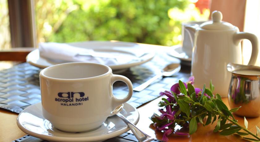 Acropol Hotel угощает постояльцев вкусными и питательными завтраками, которые входят в стоимость пребывания и подаются в светлом зале ресторана. Сюрприз для любителей поспать подольше: завтрак доступен до четырех часов дня. Сидя за уютным столиком под сенью раскидистой смоковницы, можно выпить чашечку ароматного кофе или перекусить на скорую руку. А насладиться экзотическим коктейлем, полакомиться мороженым или просто посидеть с друзьями за бутылочкой коньяка приглашает модерновый б