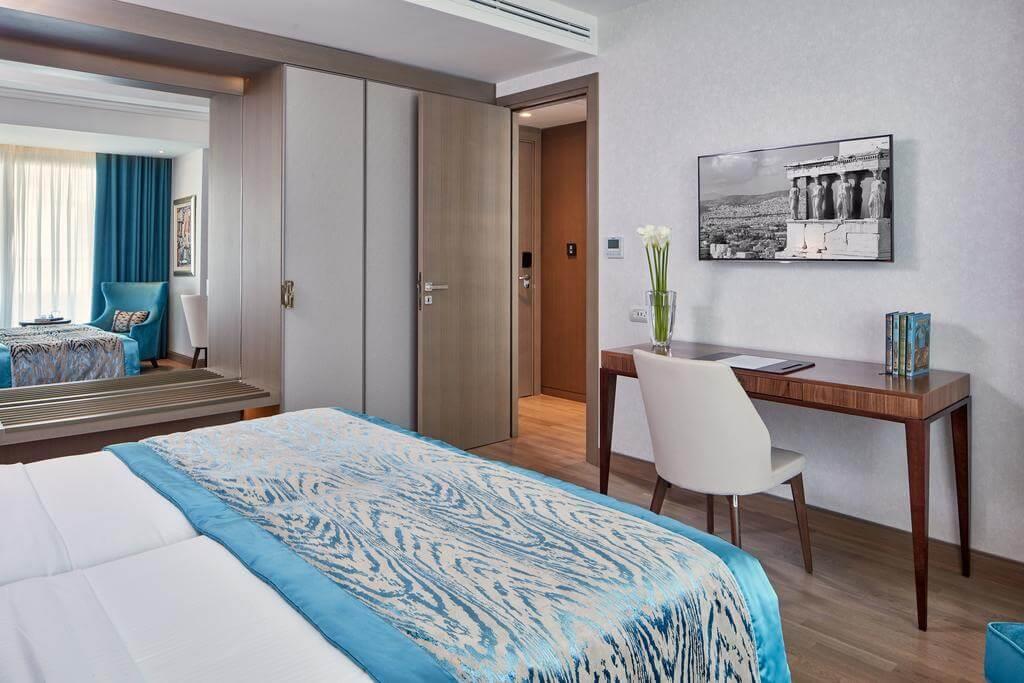 Во всех номерах Electra Metropolis Hotel есть ванная комната с душем и феном, кондиционер, система отопления, мини-бар, сейф, телевизор, телефон и Wi-Fi. Обслуживание номеров включено в стоимость проживания. Все комнаты хорошо звукоизолированы и предназначены для некурящих. В отеле обустроены апартаменты для гостей с ограниченными физическими возможностями.