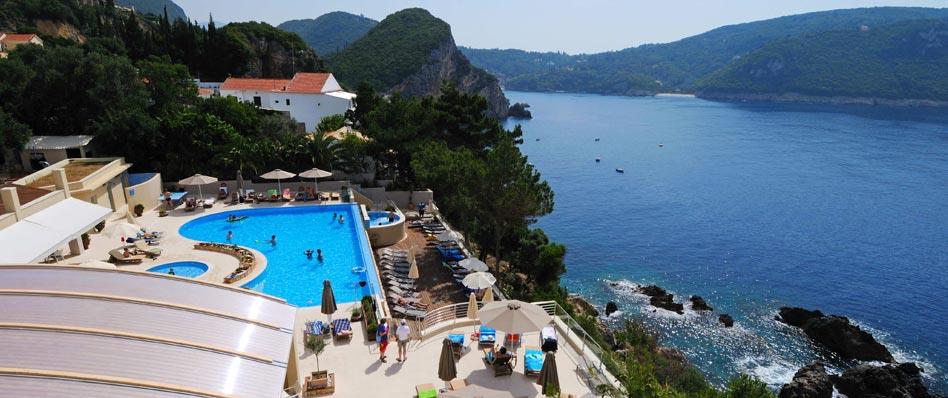На мысе Палеокастрица, омываемом с трех сторон морем, находится отель Akrotiri Beach. Его расположение уникально. При помощи подъемника, проделав путь в двадцать метров, путники попадают на песчаный пляж Агиа Триада. С другой стороны мыса, взобравшись на небольшую площадку в скале, они наслаждаются тишиной и видом на нетронутую природу: бухты и скалистые горы, укрытые ковром растительности. Неподалеку расположен живописный монастырь Теотоку, построенный еще в XVII веке на месте разрушенной святыни тринадцатого столетия. К тому же, эту местность с богатым подводным миром давно облюбовали дайверы.