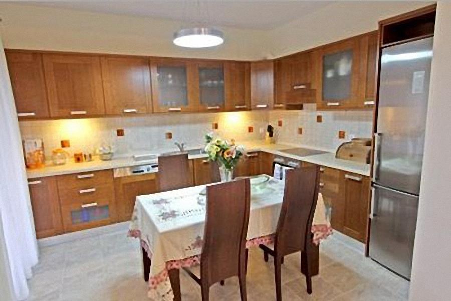 На вилле оборудована современная кухня со стиральной и посудомоечной машинами, кофеваркой и микроволновой печью. Помимо этой техники, предусмотрены и несколько наборов столовой посуды, сковородки, кастрюли.