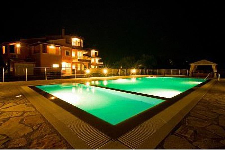 Окружает здание большой сад, в сердце которого разместился шестидесятиметровый бассейн с секцией джакузи, по периметру водоема выстроились укрытые зонтами шезлонги. Здесь же нашла себе место и зона барбекю.