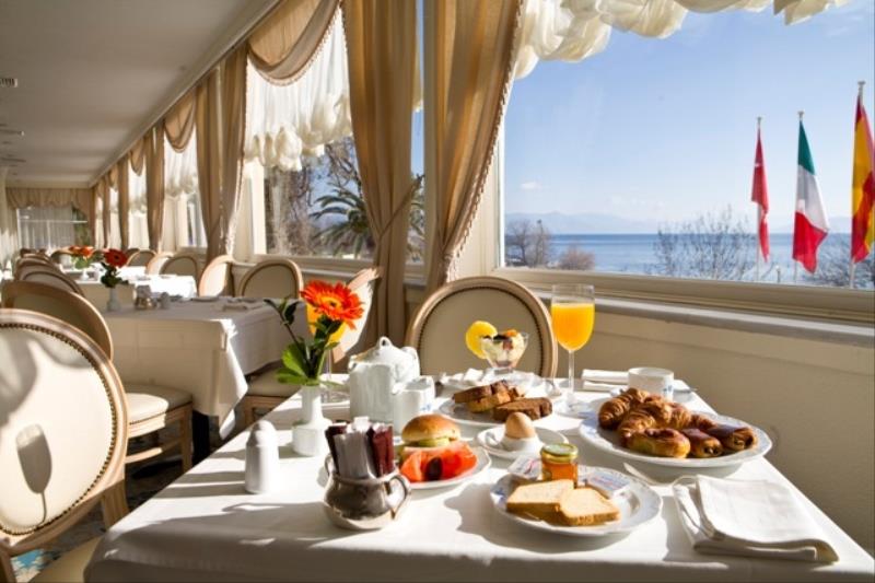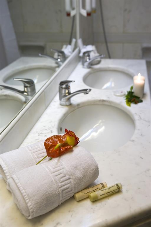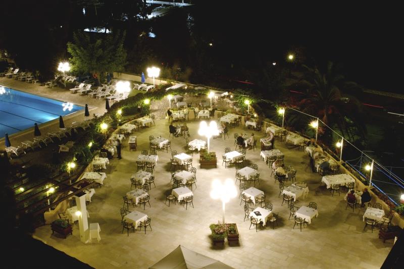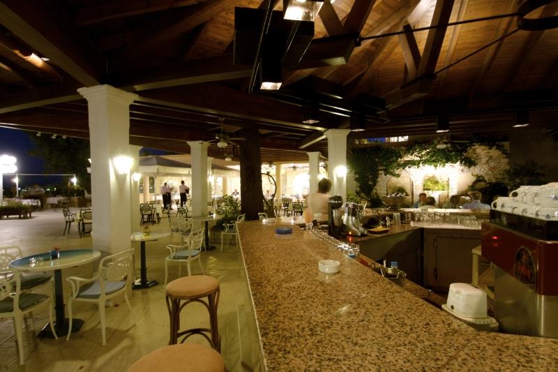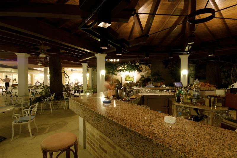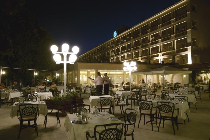 Отель окружен прекрасным тропическим садом, который дарит прохладу в летние дни и частично защищает постояльцев от городского шума. В саду расположен бар Byzantino, оформленный в соответствующем стиле. Ресторан Scheria является главным в отеле и предлагает блюда как греческой кухни, так и интернациональной. Дизайн заведения выдержан в стиле ренессанс и располагает к изысканным трапезам. У бассейна находится бар Café del mar, а по вечерам открывается гриль-бар.