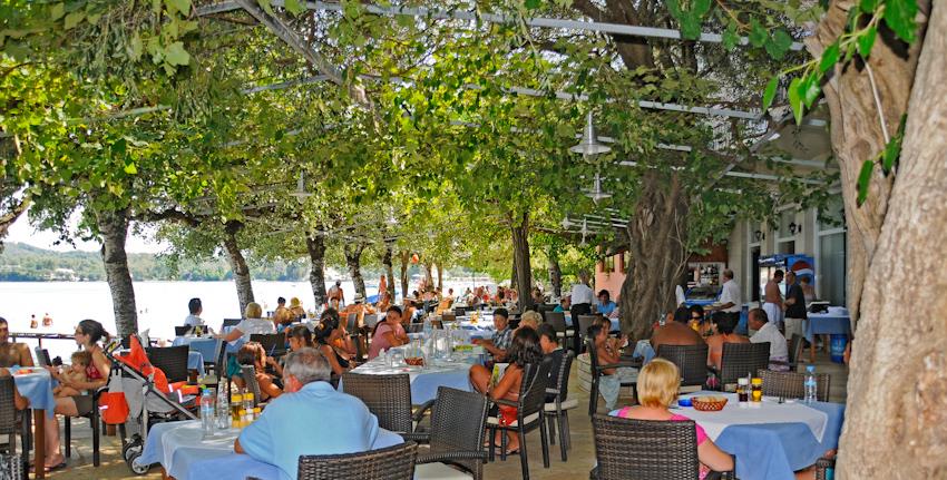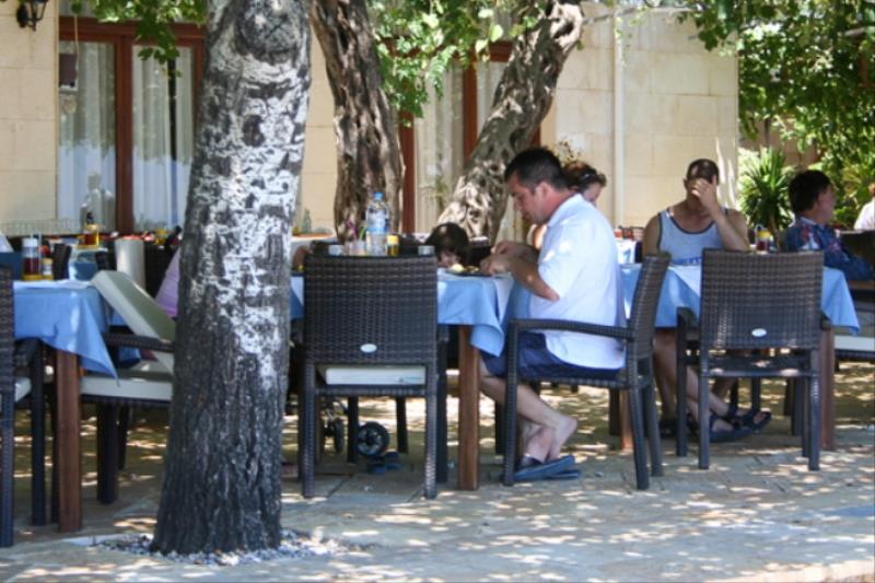 На территории же отеля постояльцы обедают на открытом воздухе – в современном ресторане просторная терраса. Здесь гостям предлагаются вкусные блюда традиционных греческой и европейской кухонь. В холле гостиницы и у бассейна, работают бары. У них подобран хороший ассортимент напитков и закусок. Постояльцы также оценивают достоинства и средиземноморской кухни, блюдами которой угощают в греческой таверне с дружелюбной атмосферой и внимательным обслуживанием. Вокруг заведения работает несколько кафе таверн и баров. Если их богатый выбор не устраивает туристов, то через дорогу расположился большой супермаркет, где при необходимости они приобретают как продукты, так и разнообразные мелочи.