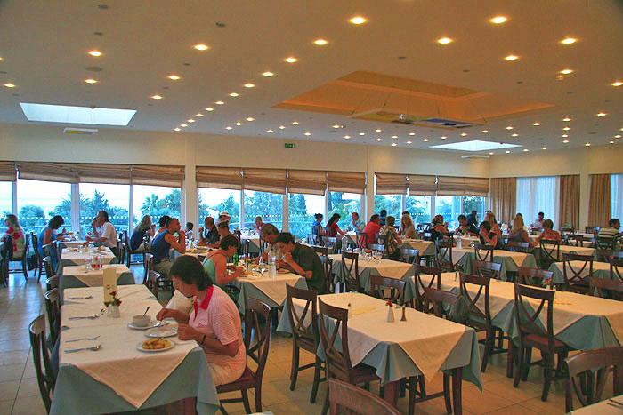 Чтобы вкусно покушать, не обязательно идти на пляж: главный ресторан отеля Delfinia накрывает для завтрака шведский стол, а на обед и ужин искусные повара готовят блюда международной и греческой кухонь.