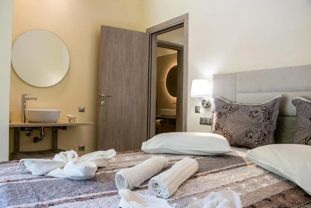 В отеле представлено 35 комфортных номеров. Особенность отеля в том, что из каждого номера открывается прекрасный вид на Ионическое море или горы. Номера выполнены в современном стиле и обставлены простой и практичной мебелью. Есть номера с одной двуспальной кроватью или двумя односпальными, также предоставляются дополнительные кровати для детей. В каждом номере оборудована собственная ванная комната с ванной, туалетом, раковиной, также есть фен и полотенца. В номерах установлен кондиционер, современный телевизор, телефон и холодильник. Также гости могут пользоваться бесплатным wi-fi.