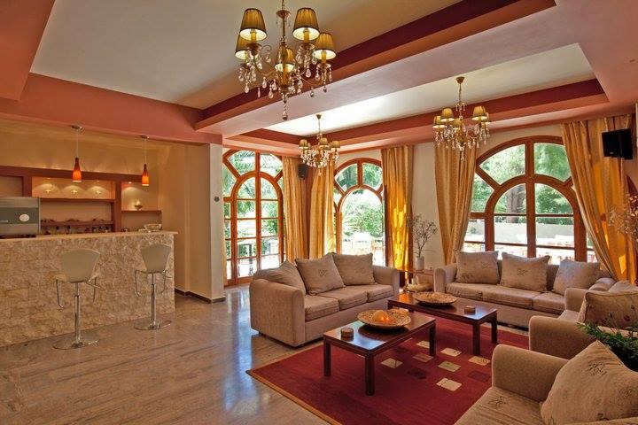 В стоимость проживания включён континентальный завтрак. В отеле работает ресторан греческой кухни, а в баре у бассейна можно заказать коктейли, соки и алкогольные напитки.