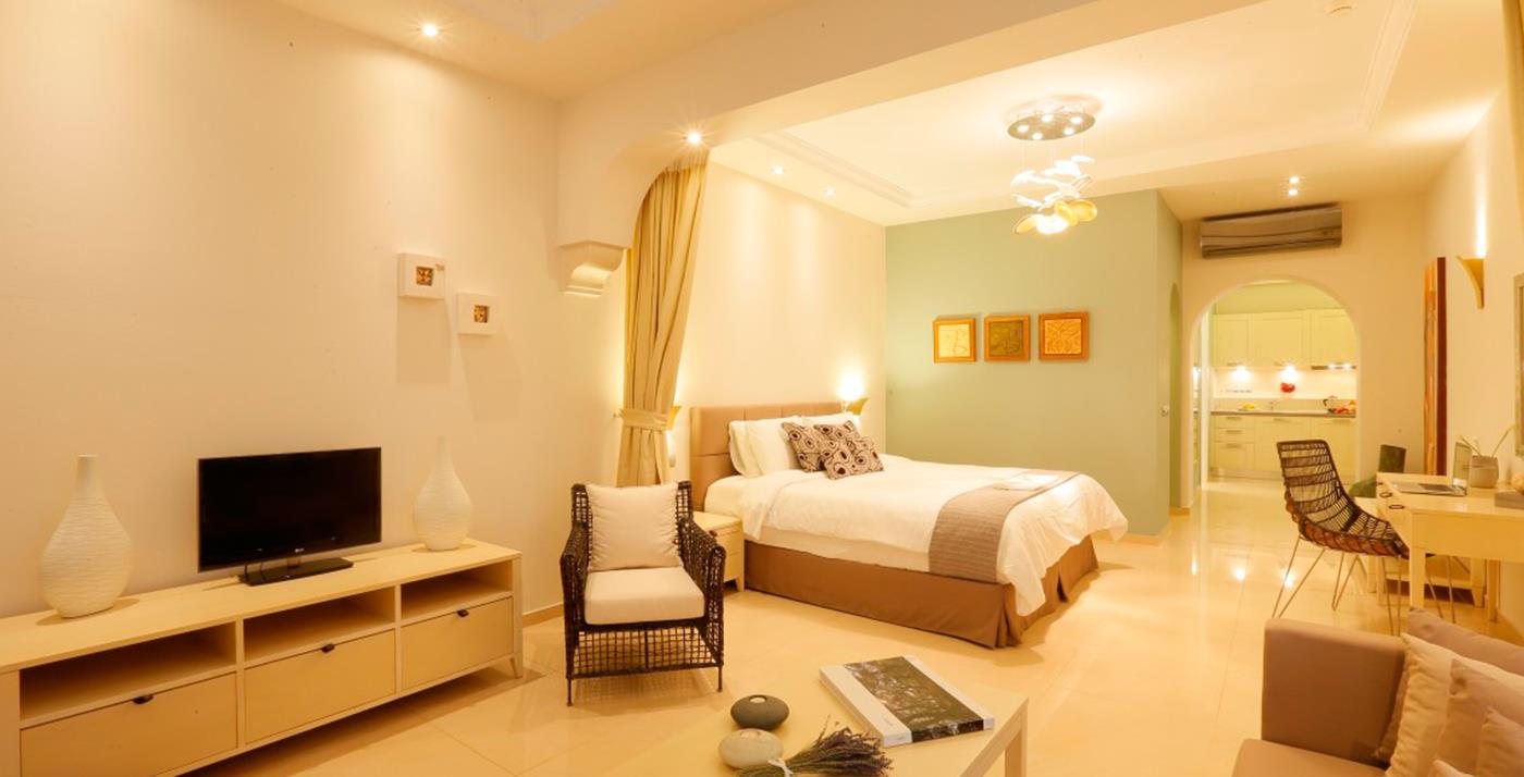 Гостиница состоит из 6 роскошных апартаментов, в которых имеются кондиционер воздуха, бесплатный Wi-Fi, телевизор, кухня, душевая с феном, просторная терраса, откуда открывается потрясающий вид на морскую гладь. Консьержи отеля позаботятся о вашем беззаботном пребывании, осуществят доставку прессы, еды и напитков в номер. Кроме того, при необходимости рабочий персонал поможет в аренде автомобиля для самостоятельного передвижения по курорту.