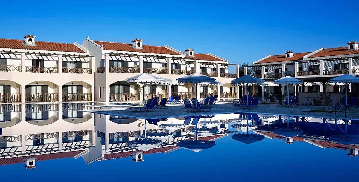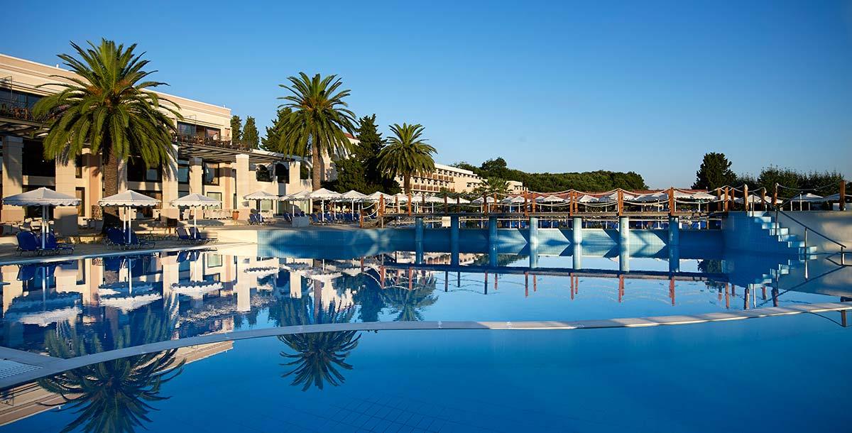 Этот пятизвездочный отель располагается в северной части острова, на расстоянии одного километра от центра города Рода. Выражение домик в деревне наилучшим образом характеризует гостиницу, корпуса которой раскиданы по склонам живописных холмов и утопают в пышной зелени садов. Первая береговая линия, просторная ухоженная территория, бесплатная парковка – это далеко не все преимущества комплекса. С утра гости спешат к бассейнам (а их в отеле шесть), чтобы погреться в лучах ласкового греческого солнышка на удобных шезлонгах. В любом из четырех баров на территории всегда есть посетители, которых привело сюда желание насладиться прохладительными напитками или полакомиться чем-нибудь вкусным.