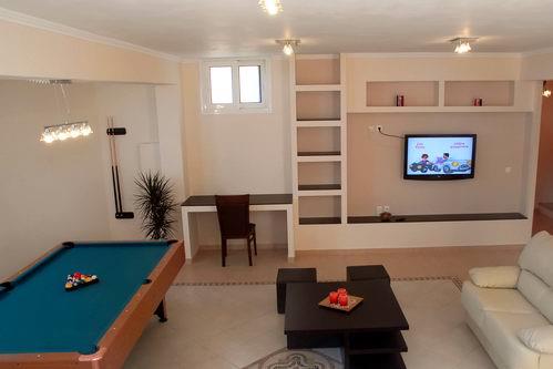 – это комплекс из двух одинаковых вилл, расположенных в центре тихого курорта Агиос Сан Стефанос, у русских туристов этот пляж пока не популярен, поэтому Вы здесь найдете полное уединение. Вилла расположена в двухэтажном здании. На первом этаже расположена просторная гостиная с большим камином и панорамными окнами на море, кухня, столовая, терраса и бассейн, ванная комната. На втором этаже две спальни с большой двуспальной кроватью, две ванные комнаты. На минус первом этаже расположена игровая комната, ванная комната и сауна. Номер: полностью оборудованная кухня, кондиционер и отопление, веранда, уборка и смена постельного белья два раза в неделю.