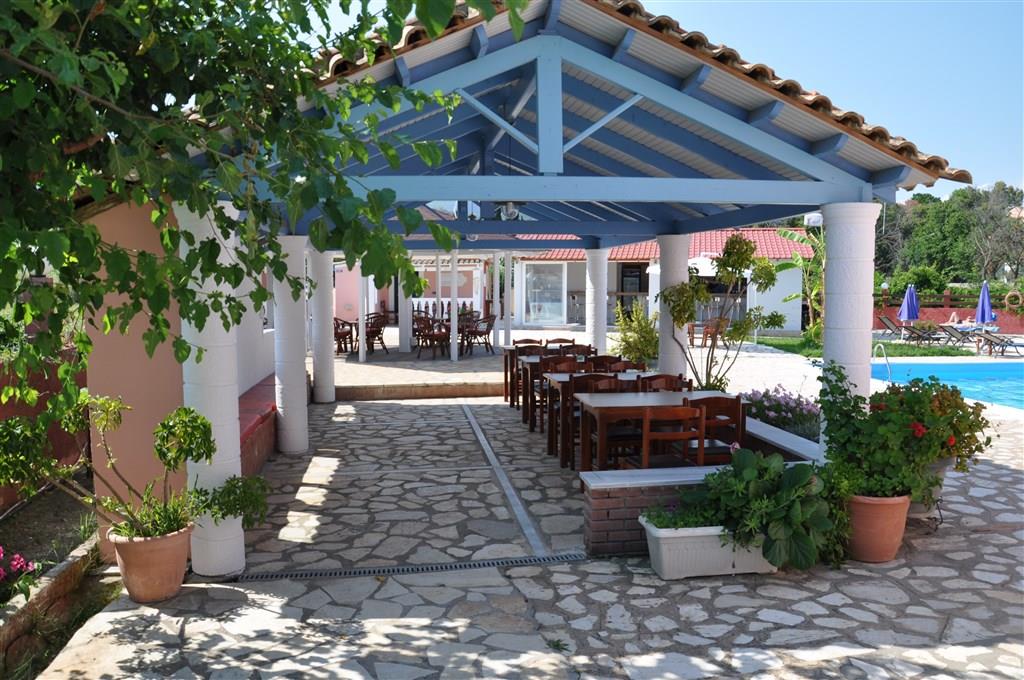 Во внутреннем дворике обустроен открытый бассейн с террасой для отдыха. Здесь же работает бар, в котором подают напитки, воду и холодный кофе. Для развлечения гостей предусмотрены места для игр в дартс и бильярд, конные прогулки и занятия по дайвингу.