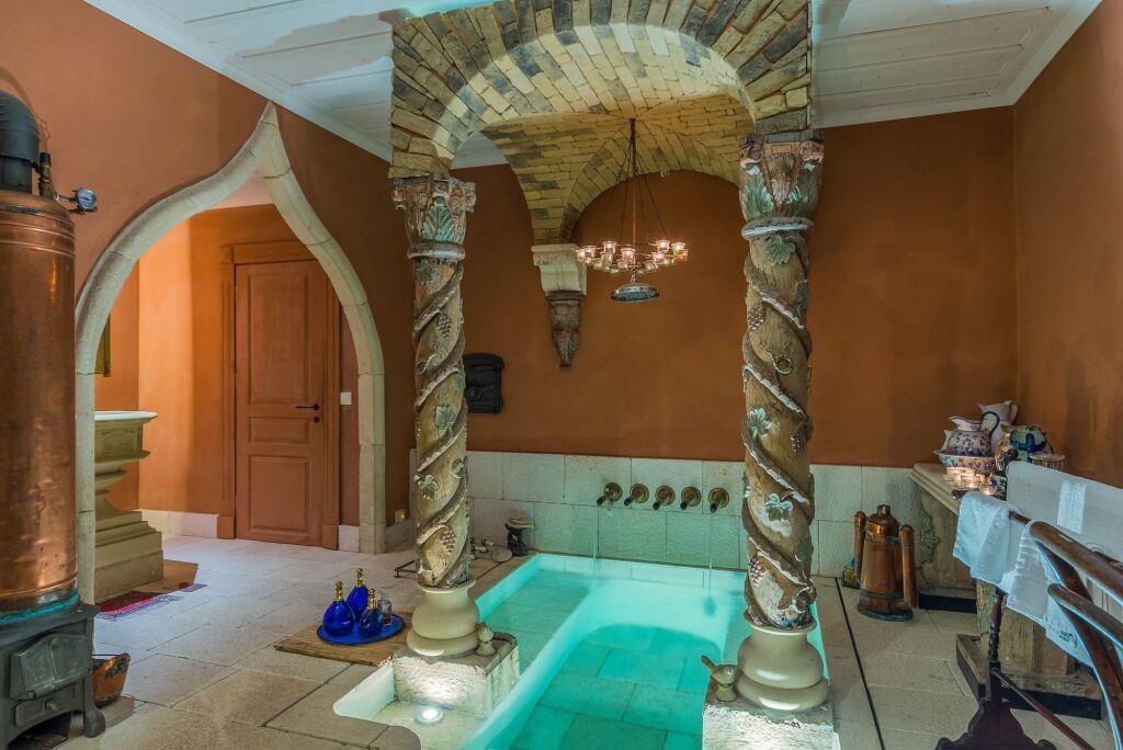 Также для гостей на вилле: спа-центр. Среди развлечений на территории – библиотека и площадка для барбекю. Здесь будем баловать себя водными процедурами: есть бассейн и открытый бассейн. Любимца не придётся оставлять дома: разрешается проживание с питомцем.