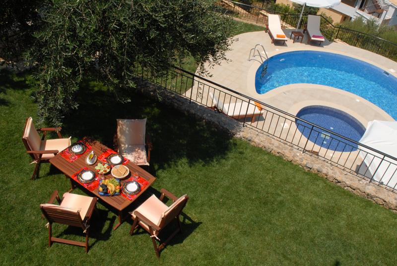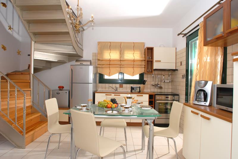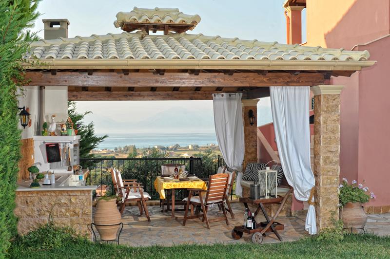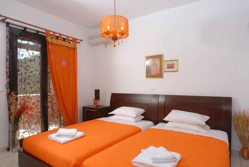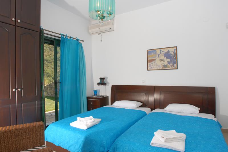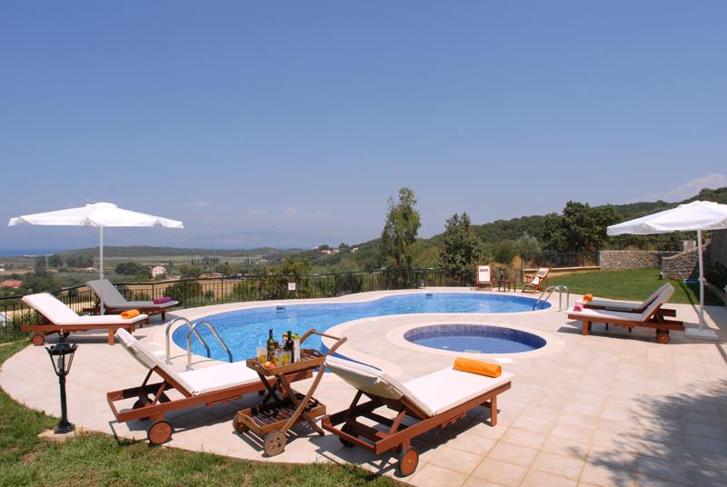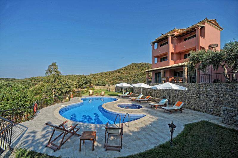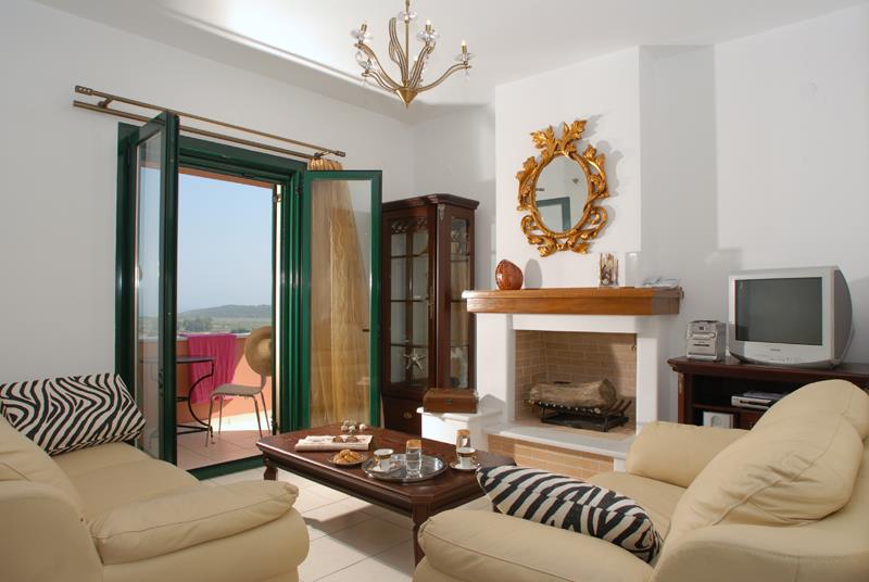На втором этаже каждого из апартаментов обустроена спальня с видом на сад. Вход сюда осуществляется как по внутренней, так и по внешней лестницам. Рядом со спальней – ванная комната со стиральной машиной. Просторные и элегантно меблированные гостиные с каминами выходят прямо в сад, где есть место для обедов на свежем воздухе. В саду, в нескольких шагах от входа на виллу, расположился красивый плиточный бассейн, манящий искупаться или отдохнуть на деревянных шезлонгах из тика в тени огромных зонтов и насладиться видом на пляж Альмирос и дальние берега Албании. Рядом с бассейном обосновалась и беседка с большим встроенным барбекю, открытой кухней и затененной меблированной обеденной зоной. На вилле Mare E Monti работают телефонная связь и интернет, спутниковое телевидение и кондиционеры. Смена белья и полотенец проходит два раза в неделю. Владельцы позаботились и о маленьких гостях: в их распоряжении не только отдельный бассейн, кроватки и стульчики, но и много игрушек. Область Ахарави, где расположена вилла, славится не только изысканной природной красотой, но считается крупнейшим и древнейшим муниципалитетом на острове. Что впечатляет путешественников, приезжающих сюда на отдых, так это самые длинные в округи пляжи, одни из самых длинных пляжей на острове. Расположенный примерно в сорока километрах от города Корфу, в прекрасном месте у подножия величественной горы Пантократор, курорт предлагает множество вариантов отдыха: здесь спокойно проводят время на самых протяженных пляжах Корф, предаются «dolce far niente», неторопливо прогуливаясь по окрестностям, штурмуют холмы на велосипедах или танцуют в ночных клубах и на дискотеках. А завораживающие пейзажи, зеленые пушистые горы и небольшие деревни, где время словно остановилось, навсегда остаются в памяти путешественни