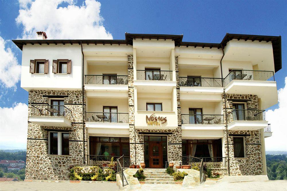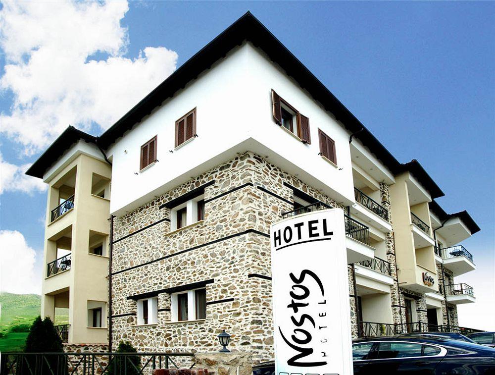 Небольшой четырехзвездочный отель Nostos нашел свое пристанище возле автомагистрали Эгнатия, в полутора километрах от всемирно известной шубной «мекки» и одного из центров Элладской православной церкви – города Кастория. Трехэтажное здание, построенное в 1997 году, выполнено в аутентичном стиле из местного камня и дерева и является отличным образцом самобытной греческой архитектуры: меблированные балконы с коваными перилами и мастерски выполненными балясинами, черепичная крыша и деревянные оконные ставни, не менявшие своего облика много лет. На ухоженной территории, кроме крохотного сада, расположена частная парковка для автомобилей визитеров и постояльцев.