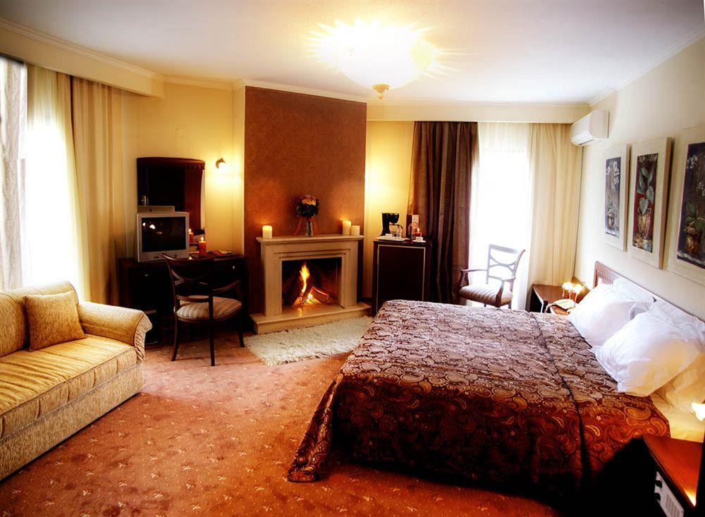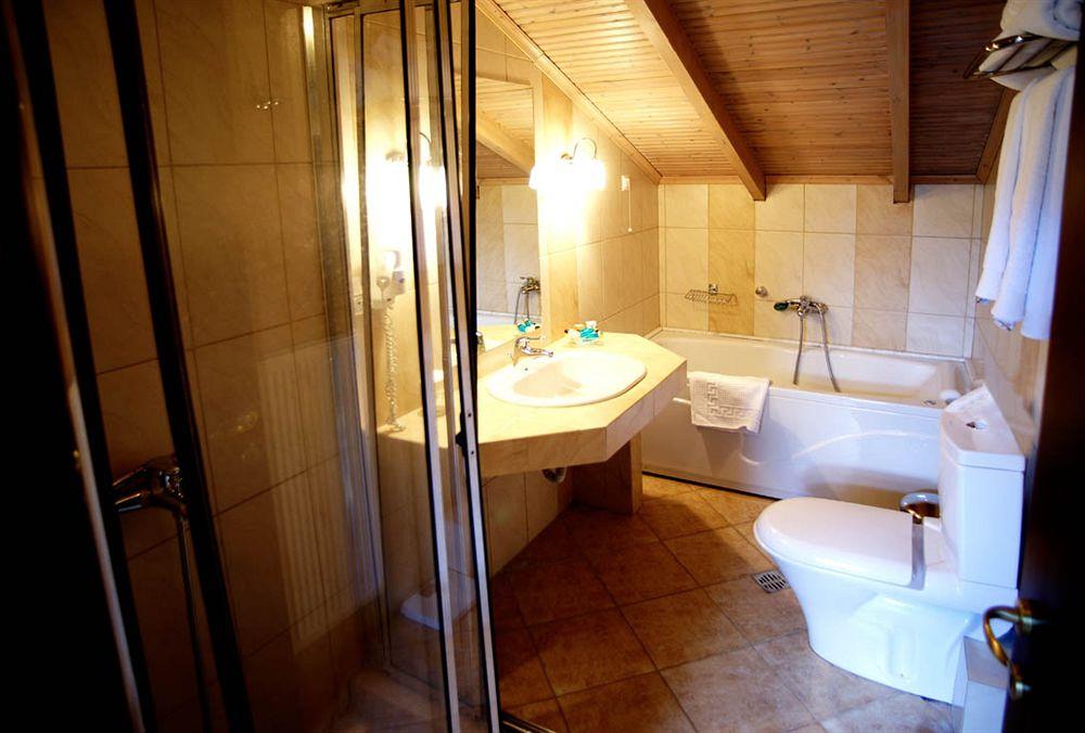В распоряжении гостей восемнадцать стандартных и улучшенных одно-, двух- и трехместных номеров, а также апартаменты класса люкс. Во всех – комфортная и функциональная мебель: емкие шкафы, тумбочки и несколько кресел; специально для дам – косметические столики с зеркалами. Интерьер помещений перекликается с общим дизайном и представляет собой мастерское исполнение деревенского примитивизма руками современных проектировщиков. На подогреваемых полах мраморная плитка с ковриками, имитирующими звериные шкуры, стены украшены картинами и пастелями флористической тематики. Некоторые кровати не просто тривиальные ложа, а настоящие произведения искусства из темного дерева с металлическими элементами декора – плодами труда виртуозного кузнеца. Оснащение соответствует заявленной звездности: индивидуальная система кондиционирования и обогрева, спутниковое телевидение со множеством каналов, в том числе и русскими, телефон с прямым набором, бесплатный беспроводной интернет, полностью укомплектованный мини-бар и электронный сейф. С балконов открываются идиллические виды на величественные горы в туманной дымке или поражающее своей красотой озеро Кастории – природный заповедник возрастом более десяти миллионов лет. В ванных комнатах есть все, что должно быть в отличном отеле: качественная плитка на полах и стенах, только модерновая сантехника и полноразмерные ванны, фен и подарочный набор гигиенических принадлежностей. Ежедневная уборка и замена постельного белья производится немногочисленным и дружелюбным персоналом. Для общения необходимы навыки греческого, английского или немецкого языков. Проживание домашних животных не допускается.