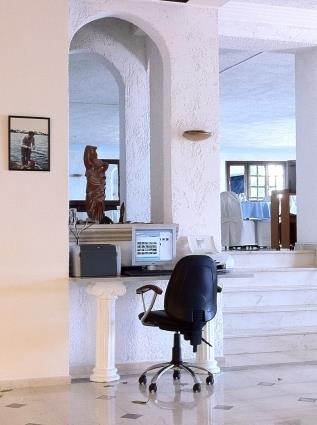 Словно вырезанному из желтого пляжного песка зданию отеля приданы характерные черты традиционной критской архитектуры. Во всех помещениях и номерах гостиницы постояльцев сопровождают арочные элементы. Комбинация бежевого и голубого цветов придает ощущение свежести, а в сочетании с подчеркнутым присутствием дерева создает иллюзию движения на огромном круизном лайнере, благо – морские волны плещутся практически под окнами.