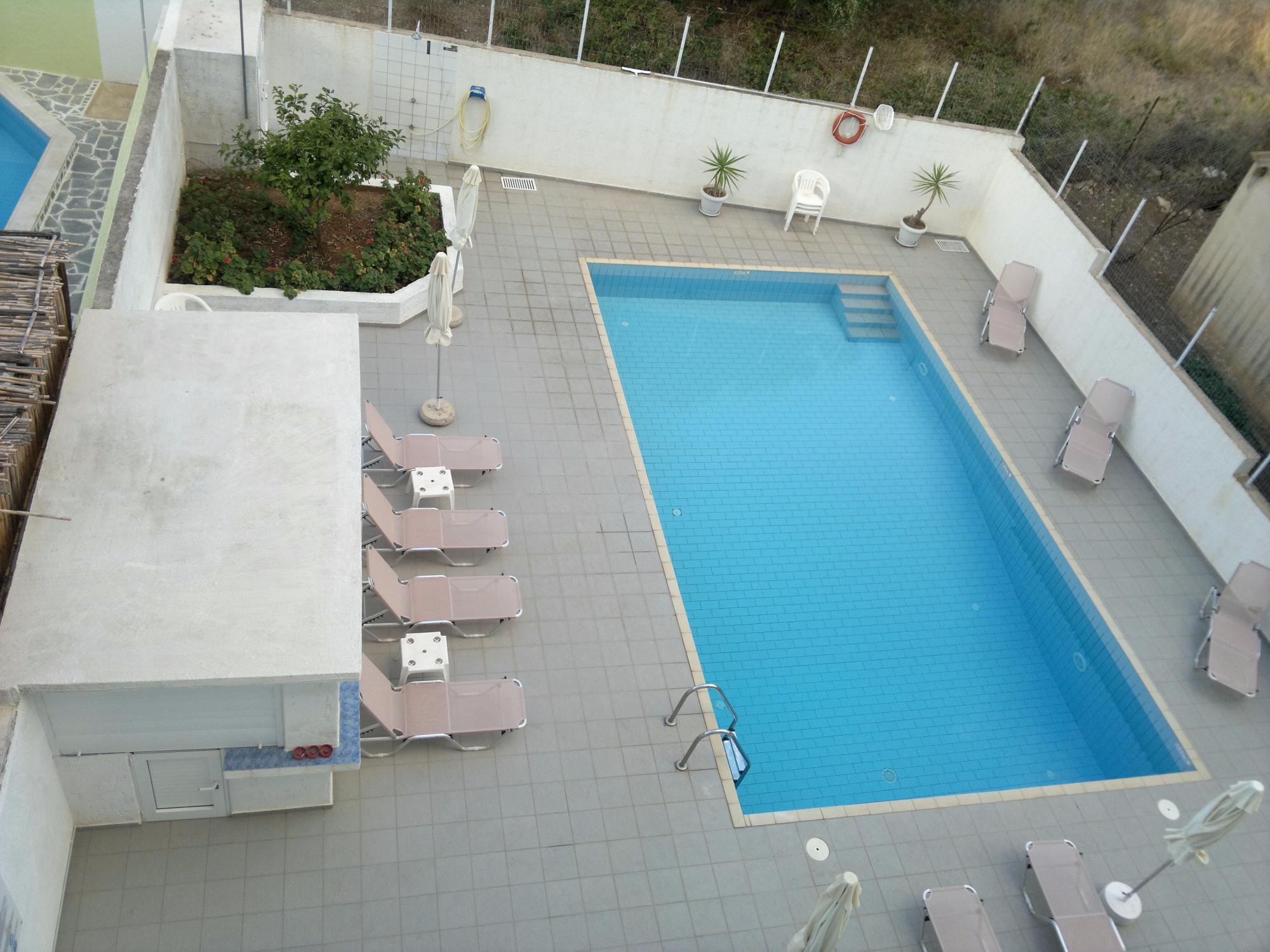 Отдыхающие принимают солнечные ванны и купаются в открытом бассейне прямо на территории отеля. Обстановку дополняют шезлонги и зонтики, обрамляющие широкую террасу вокруг него. Но не только они спасают от палящего солнца – бар гостиницы угощает коктейлями и прохладительными напитками на любой вкус.