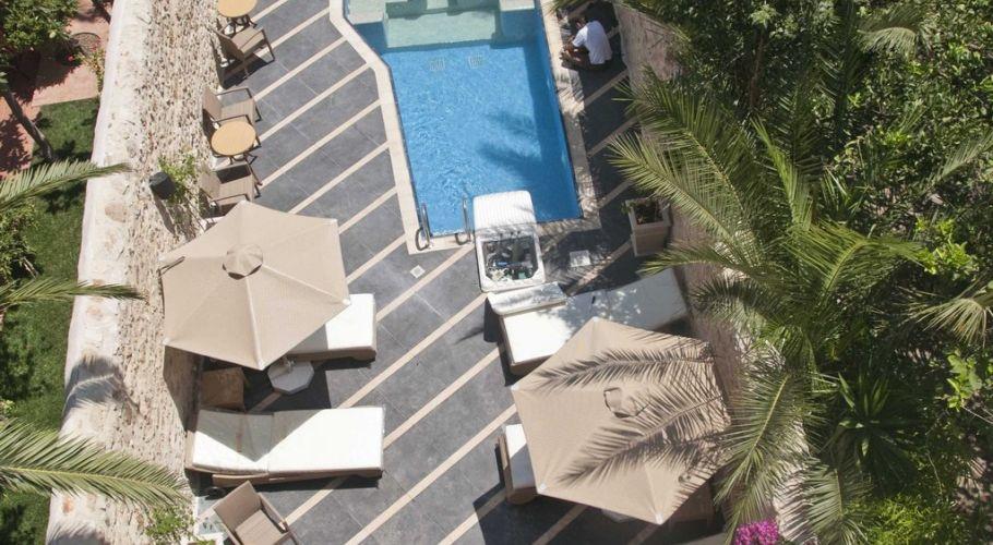 К услугам гостей большой бассейн с джакузи на крыше здания, окруженный террасой для загара с зонтами и удобными шезлонгами. Дополнительную тень создают экзотические растения. Цветы дарят нежный аромат, к которому примешивается запах близкого моря.