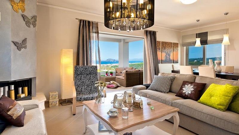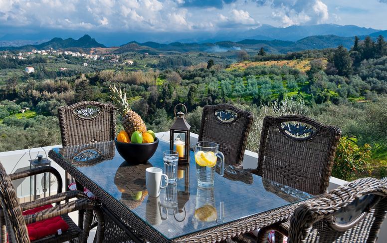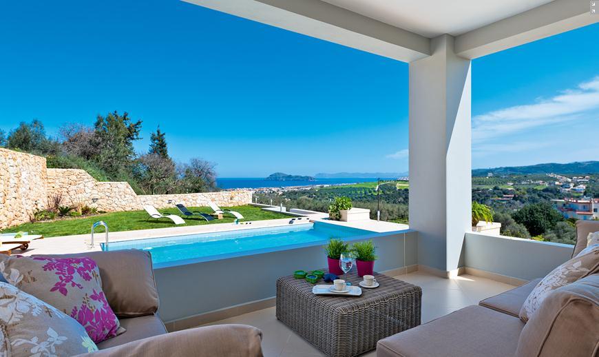 Вилла возвышается на самой вершине зелёного холма, у подножия которого раскинулся курортный городок Герани. Отсюда взорам открывается обширная панорама домиков, уходящего за горизонт Критского моря с изумрудным горбатым островом Теодору, прибрежной полосы. Сюда не доносится шум городов, нет толп людей – тишина, покой и немыслимая красота.