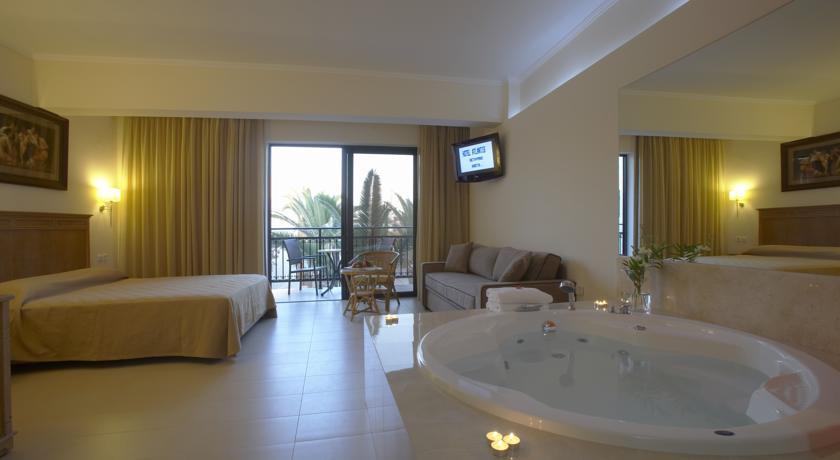 В главном здании гостиницы обустроен просторный вестибюль, из которого туристы попадают в зоны лобби и лаунж-бара, чуть дальше находится большая терраса с прекрасным видом на море. Интерьеры полностью отреставрированы в 2008 и 2009 годах и теперь радуют взгляд свежими красками и новой мебелью. Большинство номеров в отеле двухместные. Есть Junior Suites с джакузи и двухкомнатные Estate Suites. Все номера тихие, просторные и со вкусом декорированы в современном стиле. Индивидуальные кондиционеры круглосуточно освежают воздух. Для комфорта постояльцев установлены телефоны, музыкальные центры, холодильники, работают Wi-Fi интернет, LCD-телевизор со спутниковым ТВ. Каждый номер оборудован ванной комнатой с ванной или душем, феном. С балконов открываются красочные виды на море или бассейн.