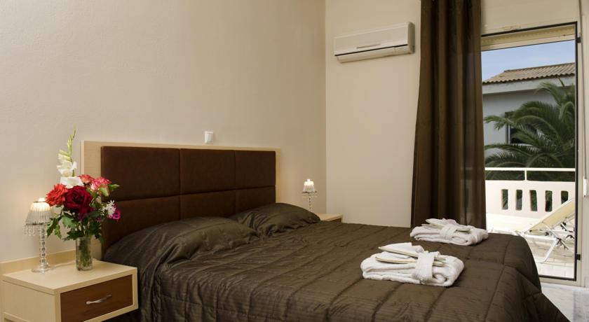Номера гостиницы оформлены в теплой серо-коричневой гамме, придающей комнатам некоторую строгость, но вместе с тем изысканность и уют. В номерах-студиях для двоих обязательно есть просторный балкон, с видом на зеленый сад или бассейн. В улучшенных студиях площадь спальни больше, а в ванной есть тапочки и халаты. Апартаменты отличаются тем, что комната в них разделена на спальную зону и гостиную-столовую, а в окнах установлены звуконепроницаемые стекла. В улучшенных апартаментах балкон особенно широк и меблирован двумя шезлонгами, удобными стульями и плетеным столиком. Самый большой номер – для семей с детьми: в нем есть отдельные спальня с гостиной, оформленные в индивидуальном стиле. Все номера, независимо от типа, оборудованы кондиционерами, телевизорами, фенами; на кроватях лежат ортопедические матрасы высокого класса; кухонная зона оснащена и плитой, и холодильником, и электрочайником, и даже кофеваркой и тостером.